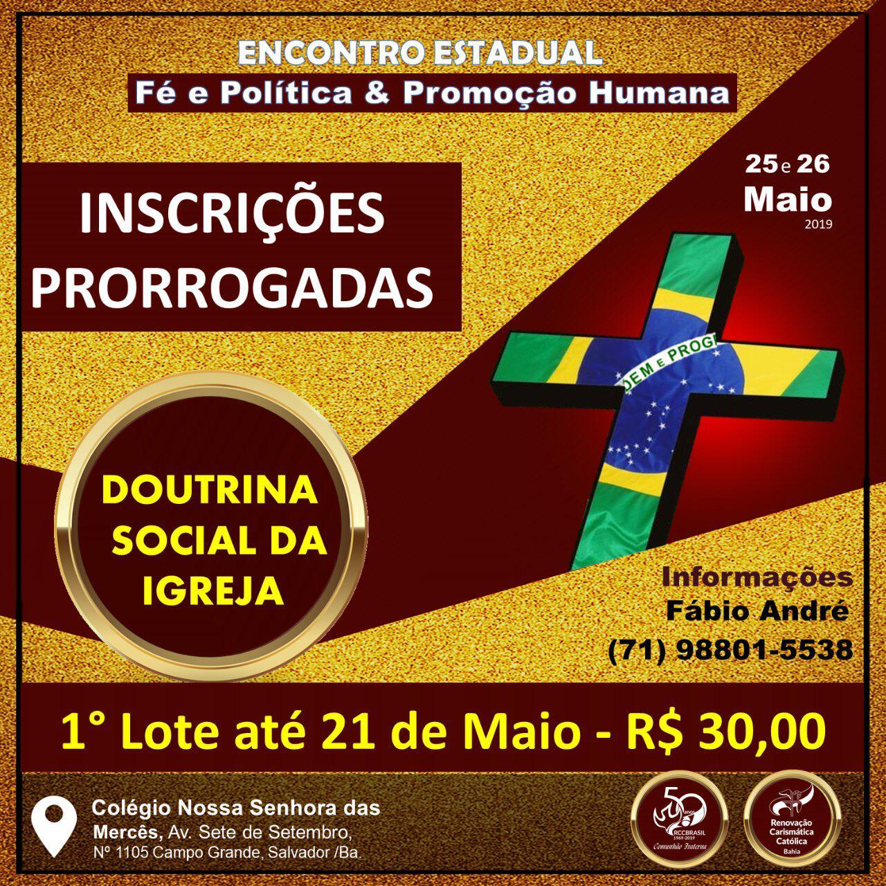 RCC Bahia realiza Encontro Estadual do Ministério de Fé e Política e Promoção Humana 20/05/2019 Leia Mais