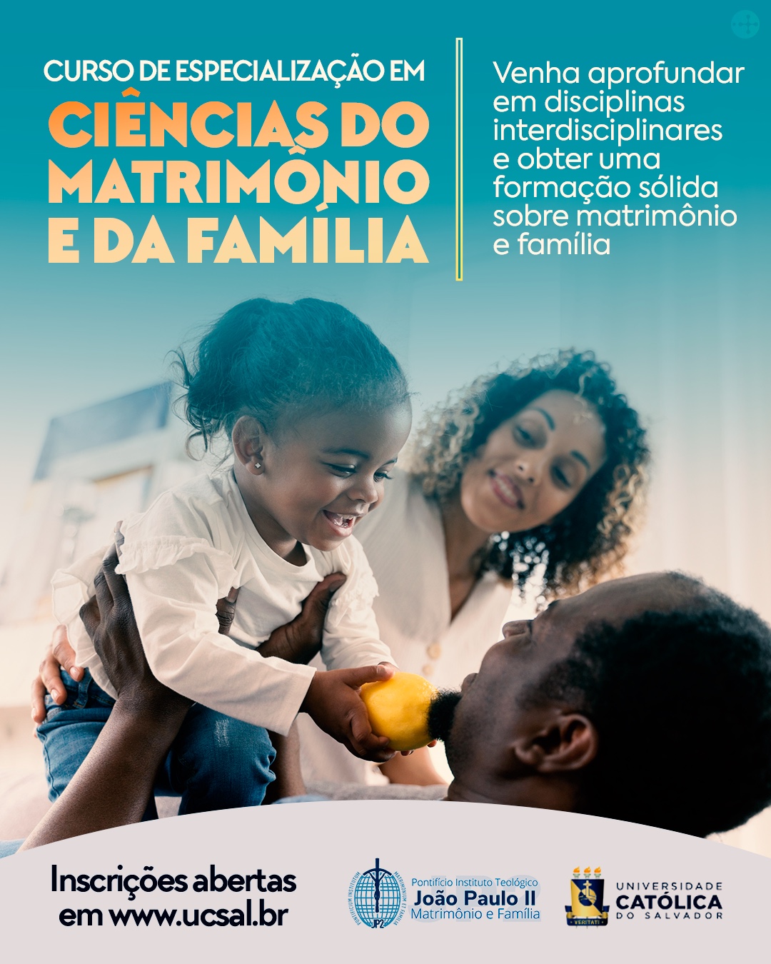 O Pontifício Instituto Teológico João Paulo II para Estudos sobre as Ciências do Matrimônio e da Família – Seção Brasileira, em parceria com a Universidade Católica do Salvador (UCSAL), abriu inscrições para o Curso de Especialização em Ciências do Matrimônio e da Família. A formação, que integra o Programa de Pós-graduação em Família na Sociedade Contemporânea e o Curso de Teologia da UCSAL, busca oferecer uma abordagem teológico-pastoral e social-antropológica, com ênfase interdisciplinar e sólida base científica.