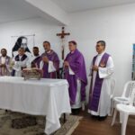 Na manhã do domingo (01), foi realizada a Santa Missa, presidida por Dom Estevam dos Santos Silva Filho, bispo auxiliar de Salvador e responsável por acompanhar a Campanha da Fraternidade no Regional NE3. Mas a pregação ficou a cargo de Dom Antônio Tourinho, que também estava na Casa de Retiros para um encontro da Pastoral da Sobriedade. Dom Antônio convidou a todos a abraçar a Campanha e lembrou que a Pastoral da Sobriedade foi colocada como prioridade no Regional NE3. “Creio que esse nosso encontro aqui é providencial. E almejo que uma ação concreta dessa Campanha seja a implantação a Pastoral da Sobriedade em todas as Dioceses e Paróquias da Bahia e Sergipe”, disse na homilia.